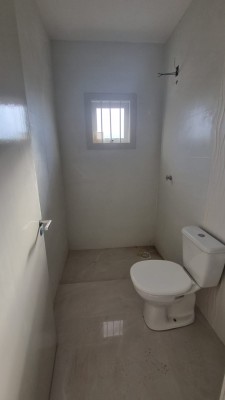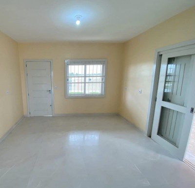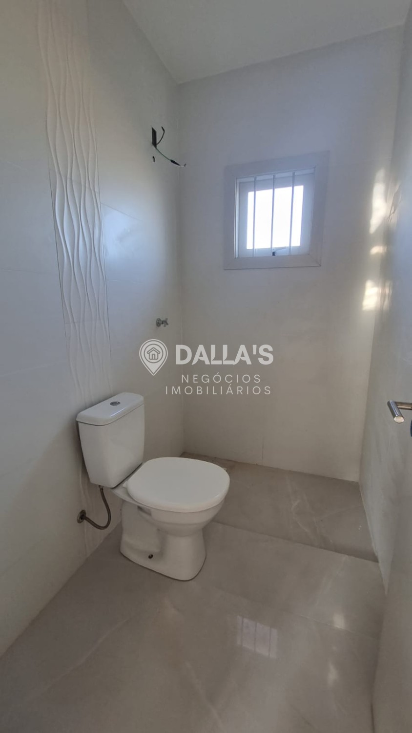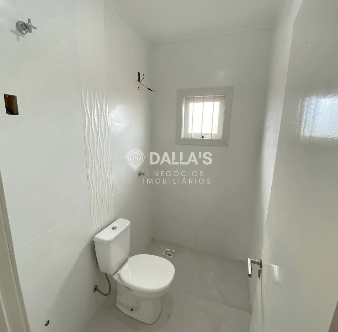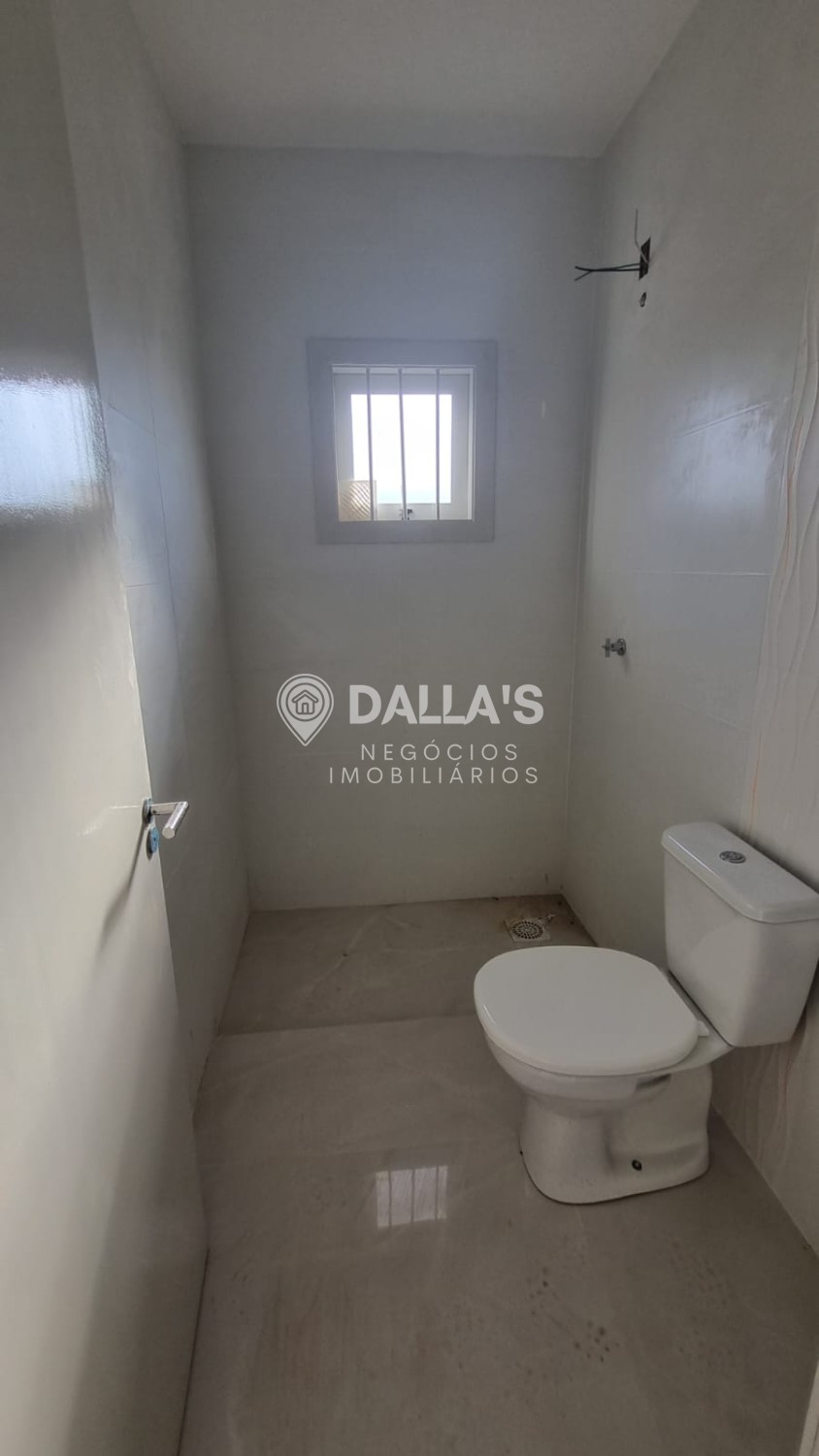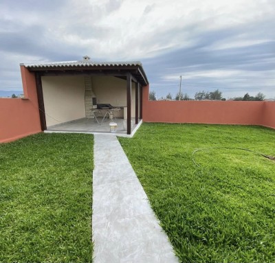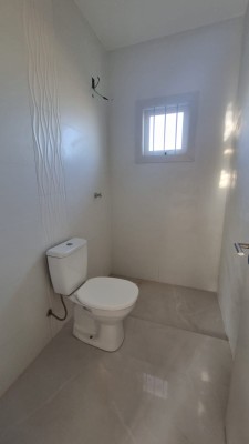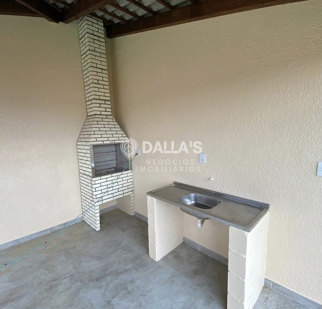 Descrição › Casa nova em alvenaria no Loteamento Esmeralda a 400m do mar, orientação solar sul, 03 dormitórios (01 suíte), sala de estar/jantar, cozinha, banheiro social, área de serviço, abrigo coberto, quiosque com churrasqueira, forro de laje, telhas de concreto, aberturas e rodapés em madeira de Itaúba, piso porcelanato, cercamento em vidro, 125,03m² de área construída em terreno cercado de 12,00m x 30,00m (360,00m²), escriturada.
