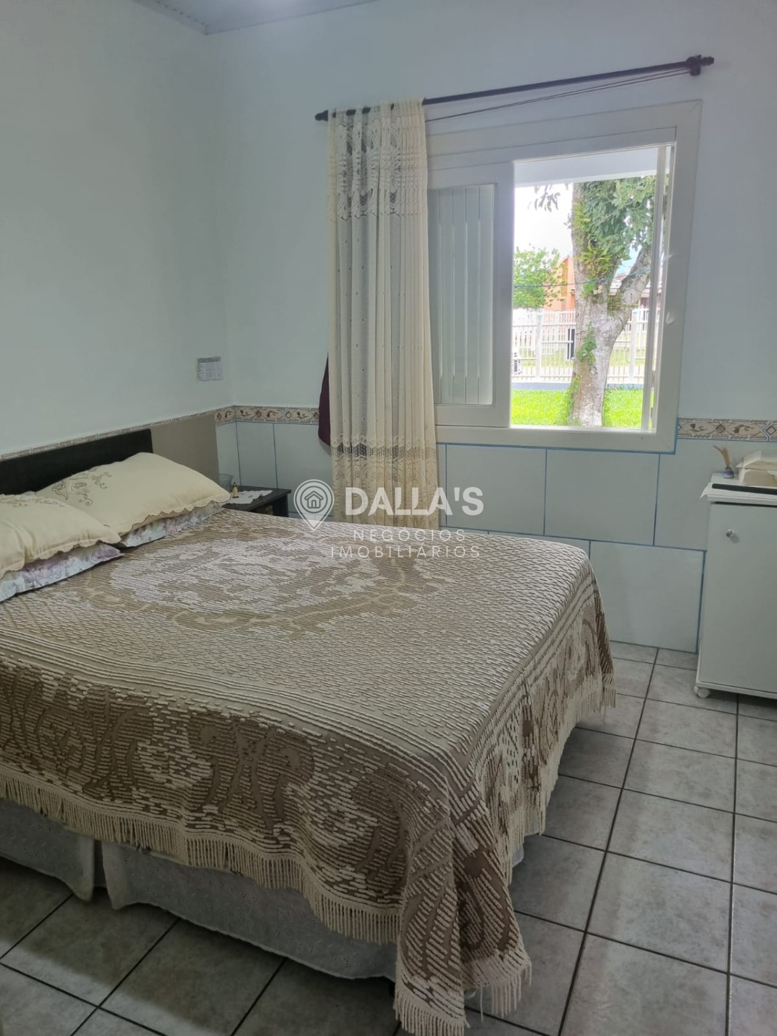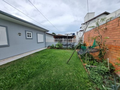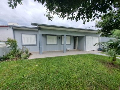 Descrição › Casa mobiliada, com 3 dormitórios, 2 banheiros, sociais, sala de jantar e estar, área de serviço, churrasqueira, garagem fechada, pátio amplo e fechado.