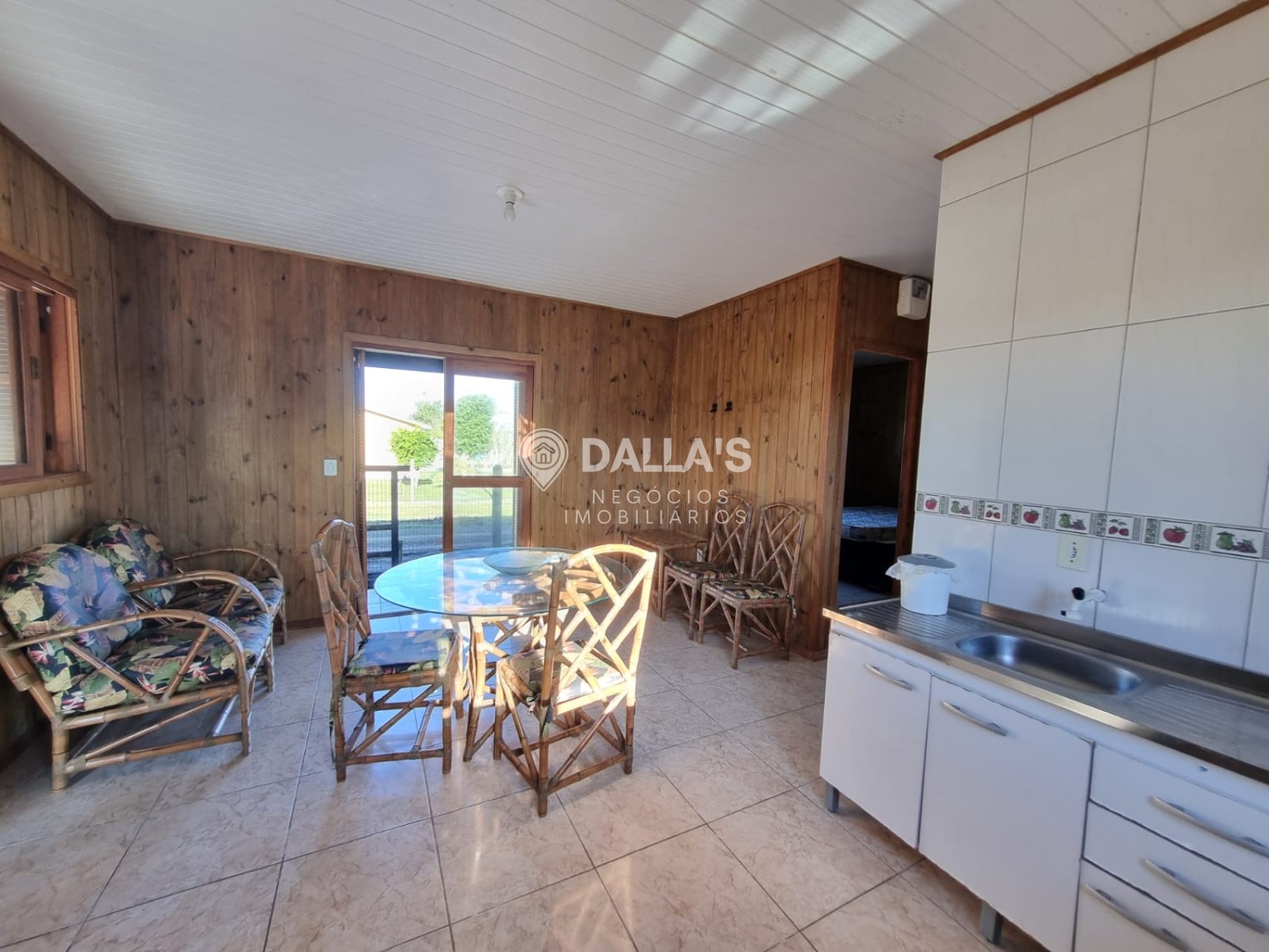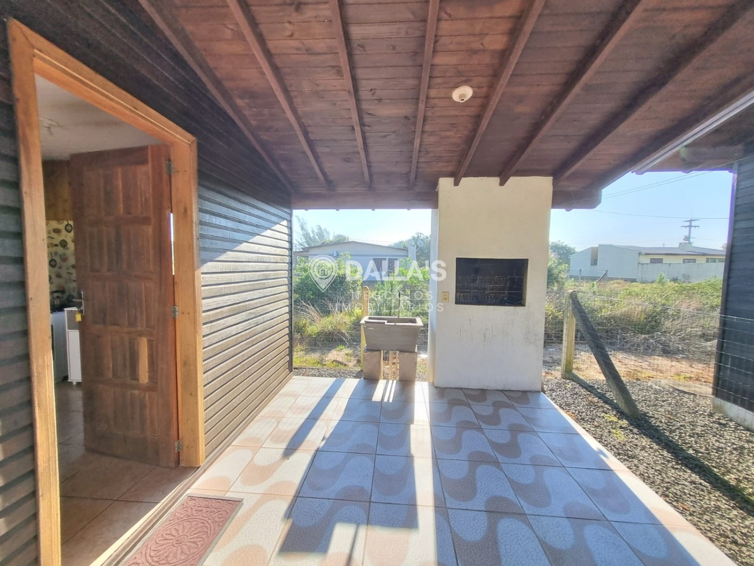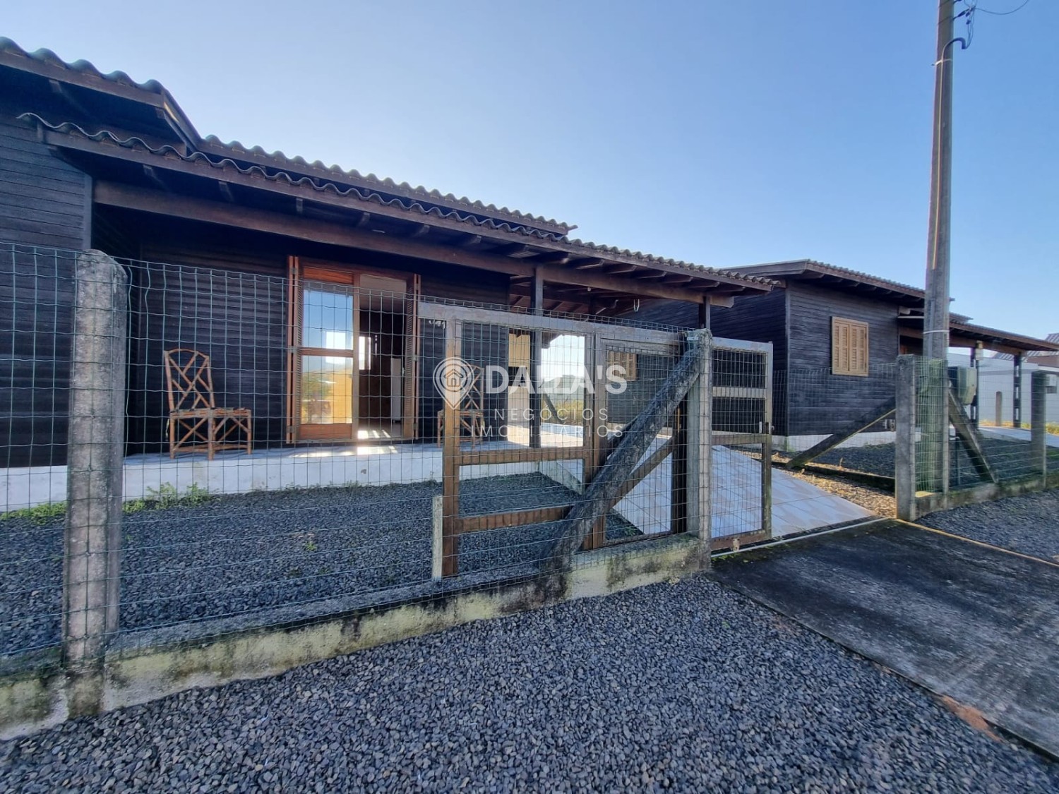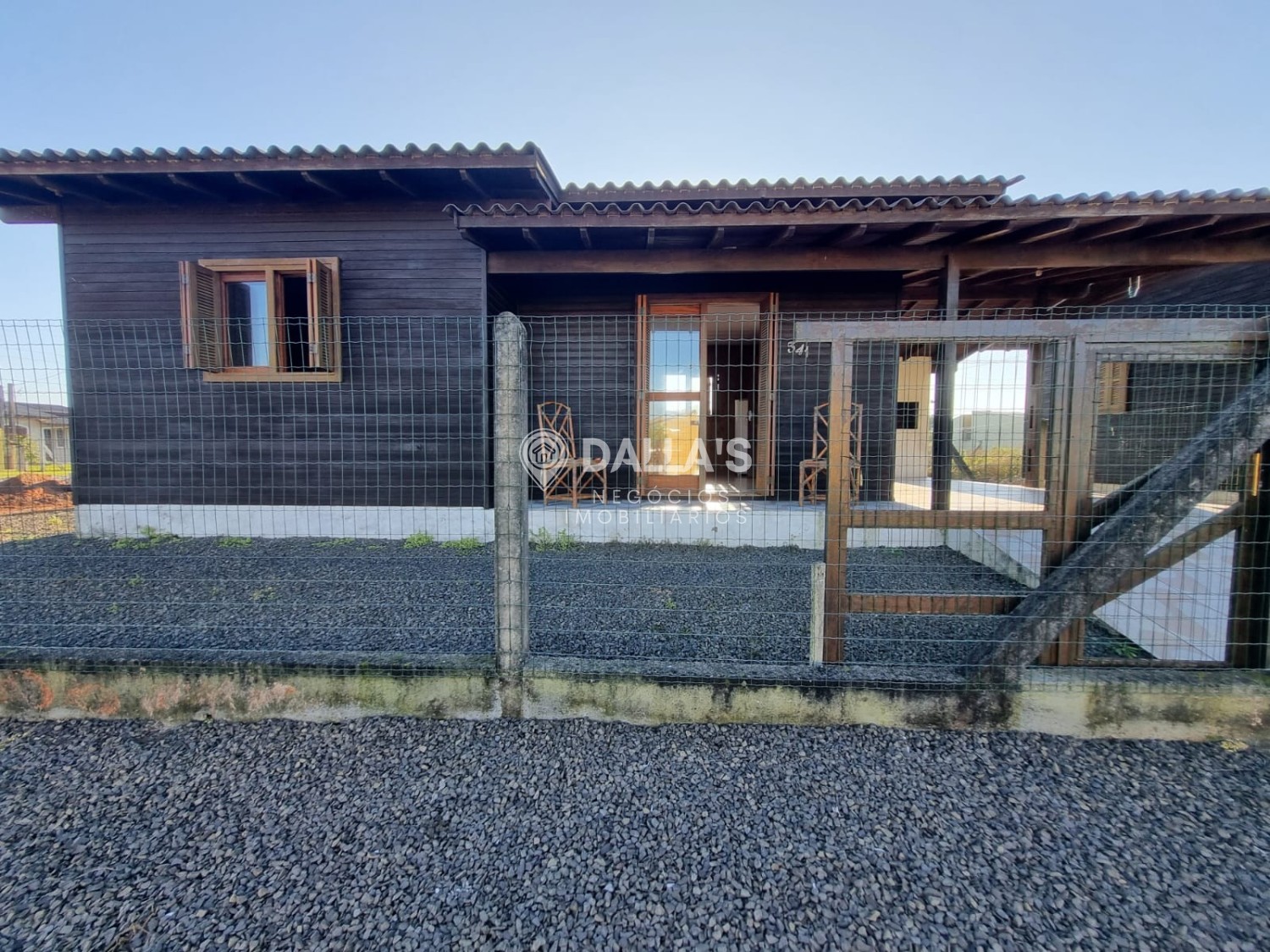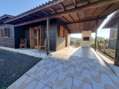 Possui 2 dormitórios, 1 banheiro social, sala de estar e jantar, churrasqueira, abrigo para carro.