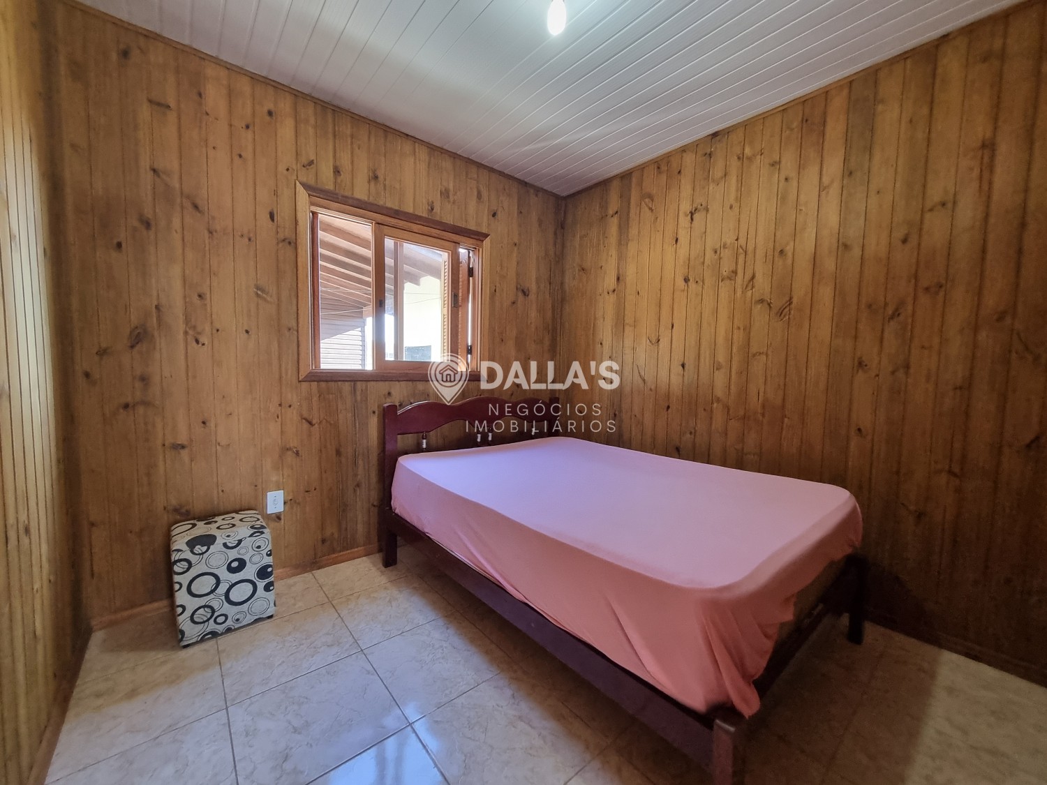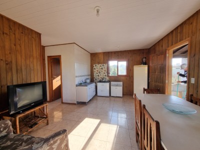 Possui 2 dormitórios, 1 banheiro social, sala de estar e jantar, churrasqueira, abrigo para carro.
