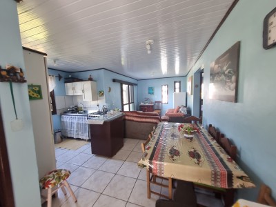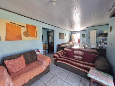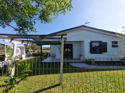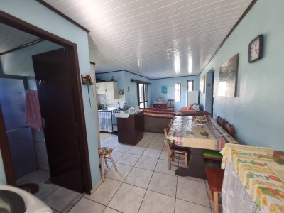Descrição › Localizada em Arroio do Sal, no bairro Figueirinha, esta casa semi mobiliada, casa esquina. Apenas 500 metros do mar. Com dois dormitórios e um banheiro, o imóvel oferece conforto e praticidade para toda a família. Além disso, possui box de garagem.