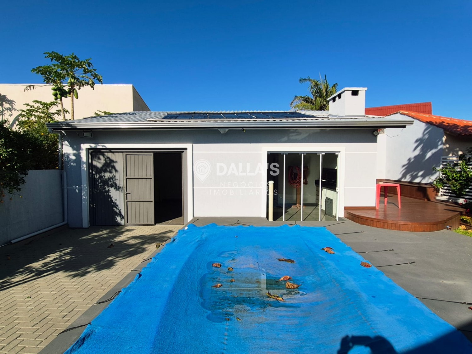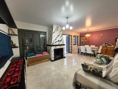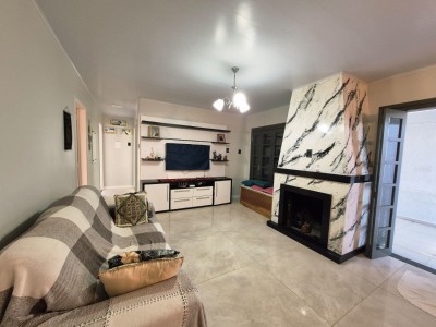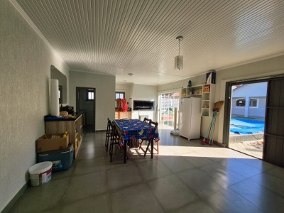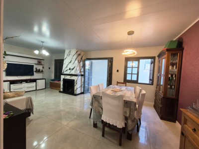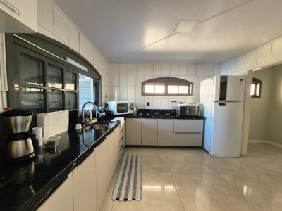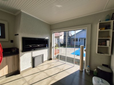 Com esquadrias em madeira, a casa apresenta características que encantam, como sistema de alarme, área gourmet, área de serviço, banheiro social, churrasqueira, cozinha equipada, depósito, energia solar, garagem aberta, ambientes integrados de jantar e estar, lareira para os dias mais frios, amplo pátio, piscina para momentos de lazer e relaxamento, além de estar pronto para morar. Quiosque com churrasqueira, banheiro e vaga estacionamento fechada.