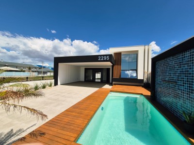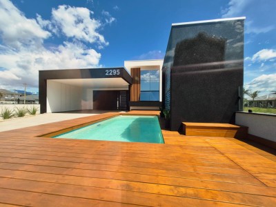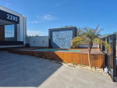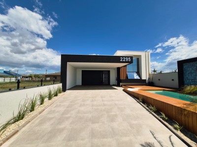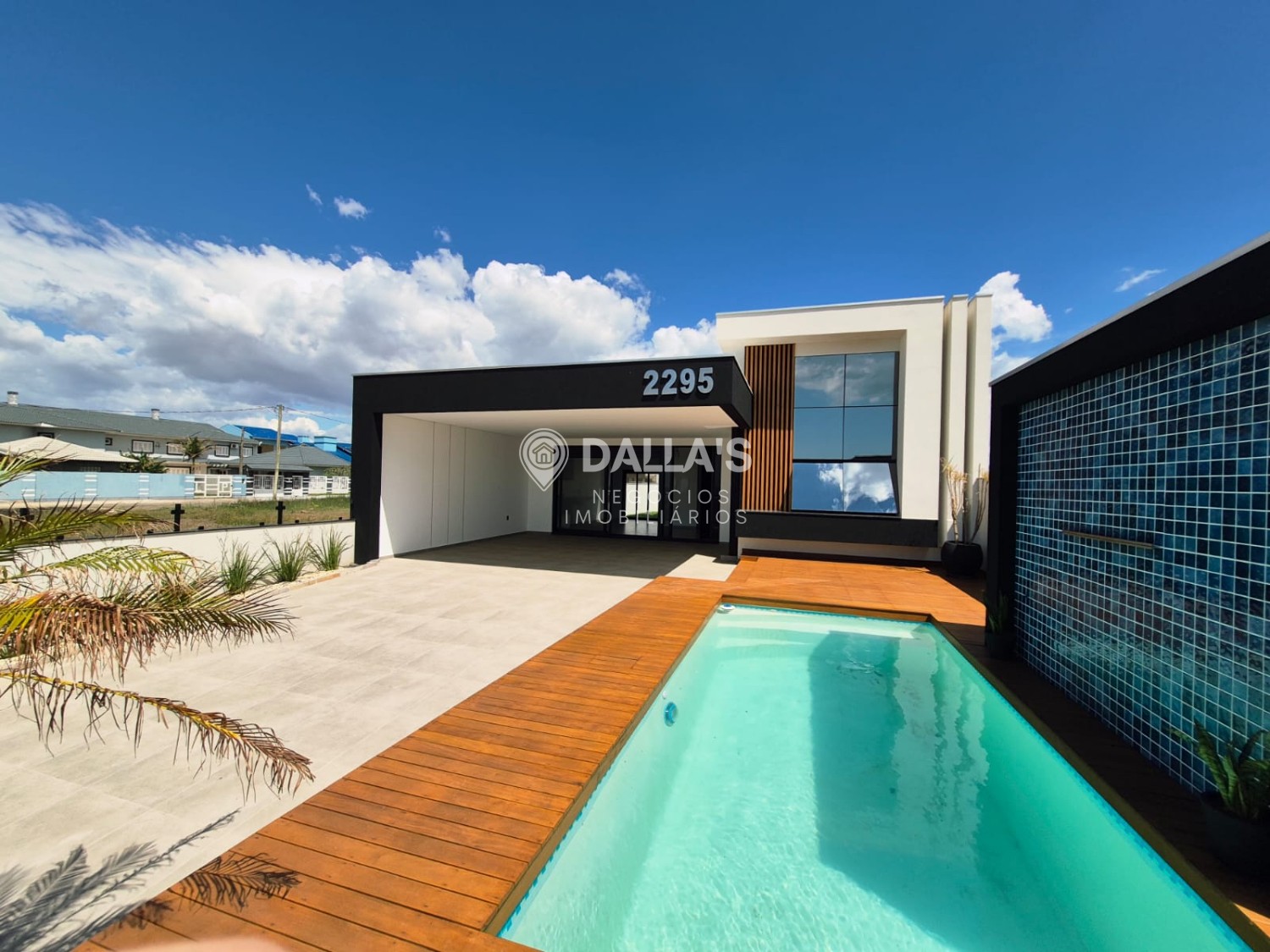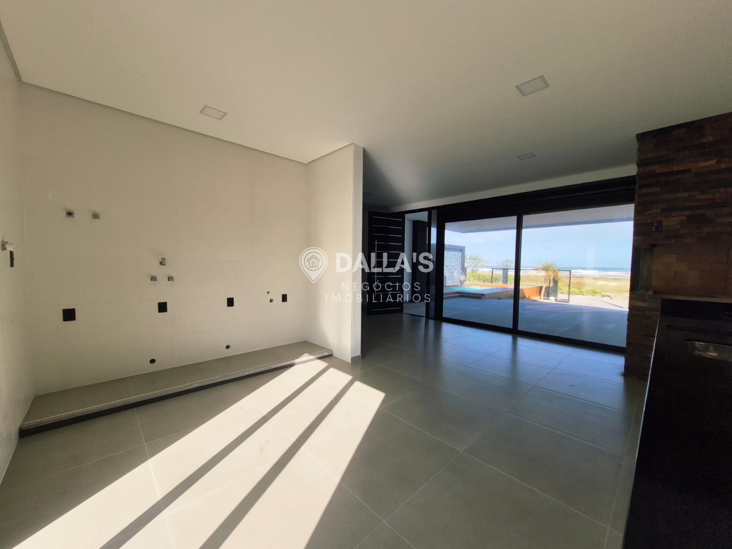 Descrição › Localizada em frente ao mar, esta encantadora casa de praia em Arroio do Sal, no Balneário Camboim, oferece todo o conforto e tranquilidade que você procura. Com 187m² de área privativa, o imóvel conta com 3 dormitórios, sendo 1 suíte, e 2 banheiros. As esquadrias em alumínio automatizadas proporcionam um ambiente arejado e iluminado, enquanto a área gourmet com churrasqueira é perfeita para reunir a família e os amigos. Sistema de aspiração central, sistema de som integrado, alexa. Além disso, a casa possui piscina, lareira, pátio e vaga de estacionamento para 3 carros.