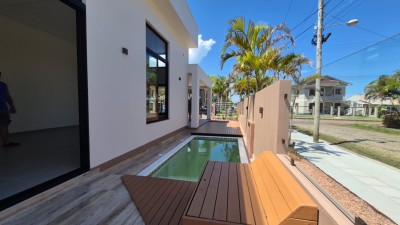 Descrição › Encantadora casa à venda em Arroio do Sal, localizada em um bairro tranquilo. Com 3 dormitórios, sendo 1 suíte, e 1 banheiro social , aquecimento com gás, piscina com deck móvel. Este imóvel oferece conforto e espaço para toda a família. Com área privativa de 145,80m², as esquadrias em alumínio trazem um toque moderno e elegante à residência. Não perca a oportunidade de adquirir esse pedacinho de paraíso no litoral gaúcho. Agende sua visita e encante-se!
