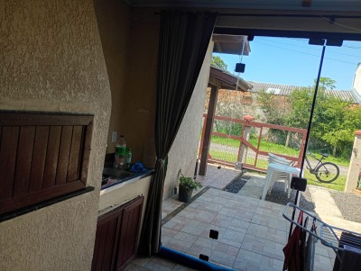 Descrição › Casa a venda em Arroio do Sal, no Rio Grande do Sul. Com 3 dormitórios, sendo 1 suíte, e 2 banheiros, este imóvel é perfeito para quem busca conforto e tranquilidade. Além disso, conta com uma área privativa de 160m², churrasqueira, garagem fechada e um belo pátio. Venha conhecer e se encantar com cada detalhe desta casa!