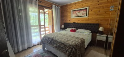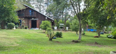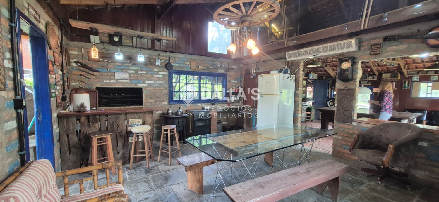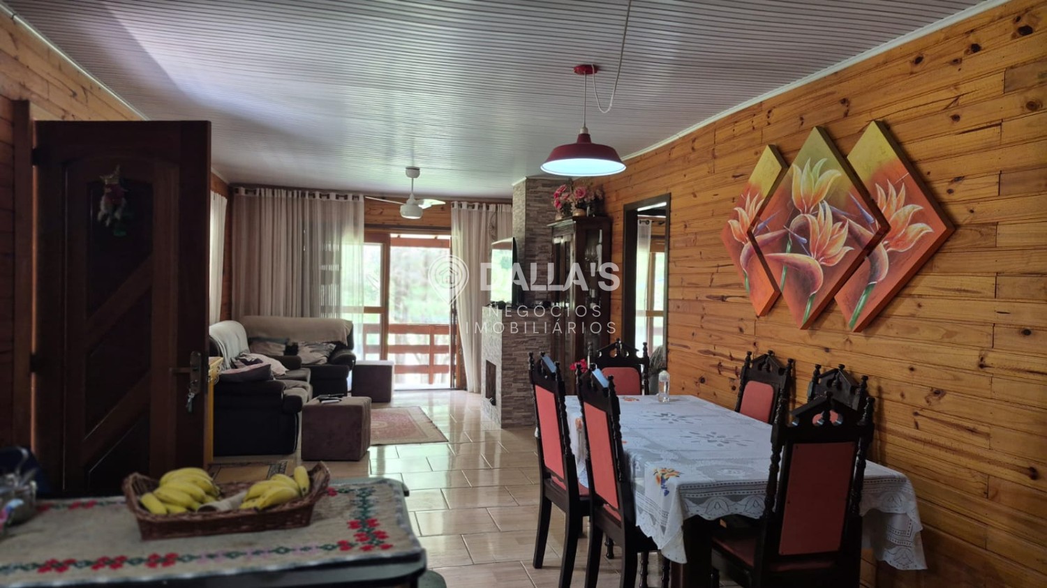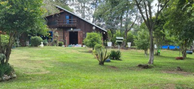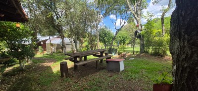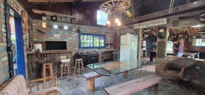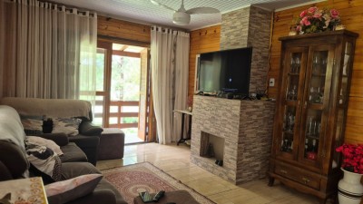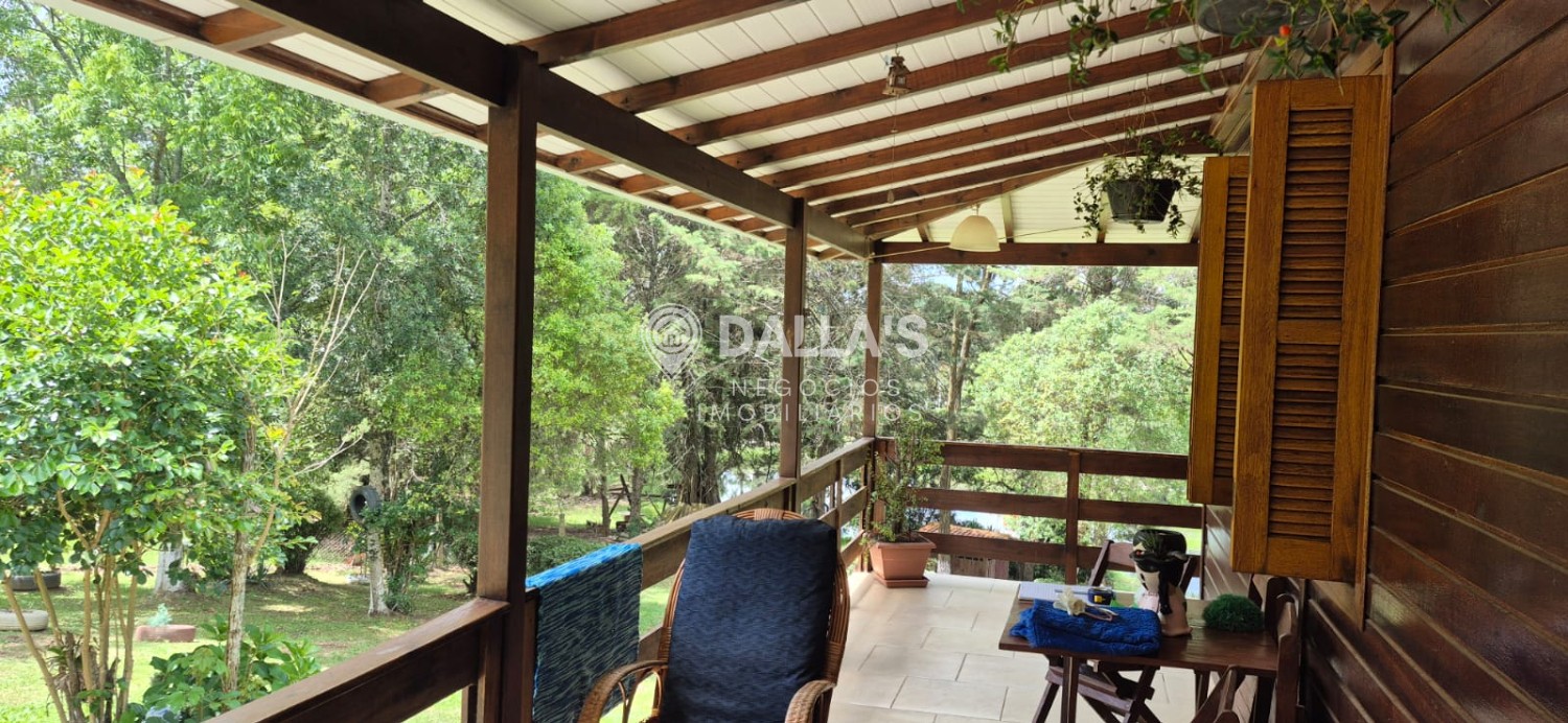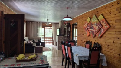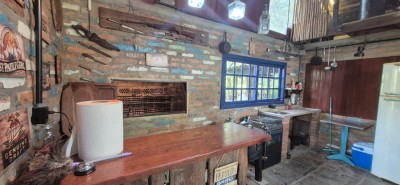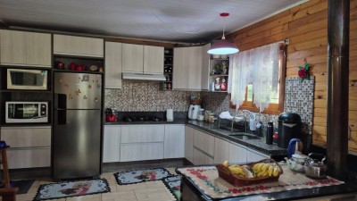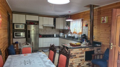 Casa com 120 m² , 3 dormitórios sendo 1 suíte, varanda em L, cozinha, sala de estar e jantar. Um quiosque com 66 m² mais mezanino, decoração rústica.