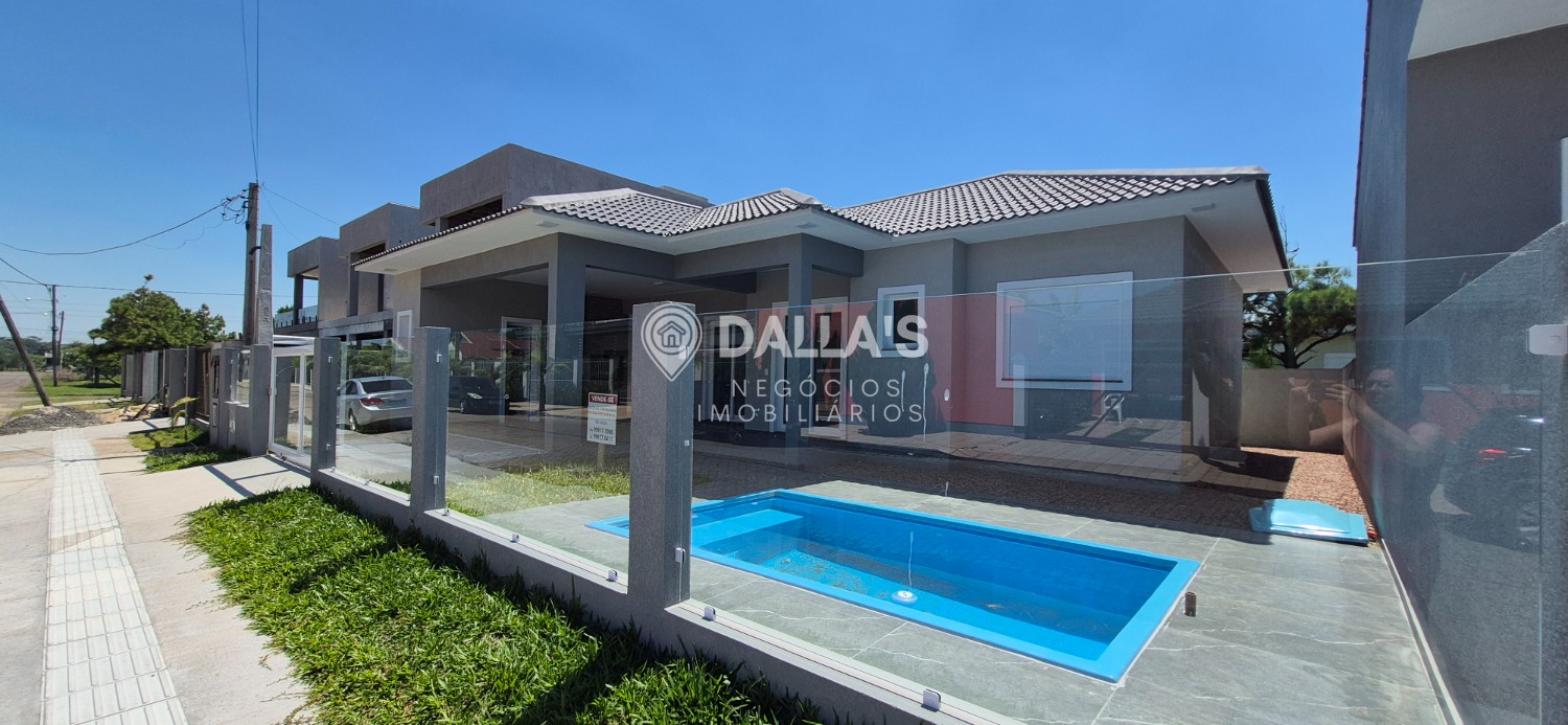 Descrição › Encantadora casa de 3 dormitórios, sendo 1 suíte, localizada no Balneário Vista Alegre em Arroio do Sal, RS. Com 117m² de área privativa, este imóvel conta com churrasqueira, piscina e rebaixo em gesso. Além disso, possui sala de estar, cozinha integrada, área de serviço e vaga para 2 carros. Perfeito para quem busca conforto e tranquilidade em um bairro pavimentado e cercado.